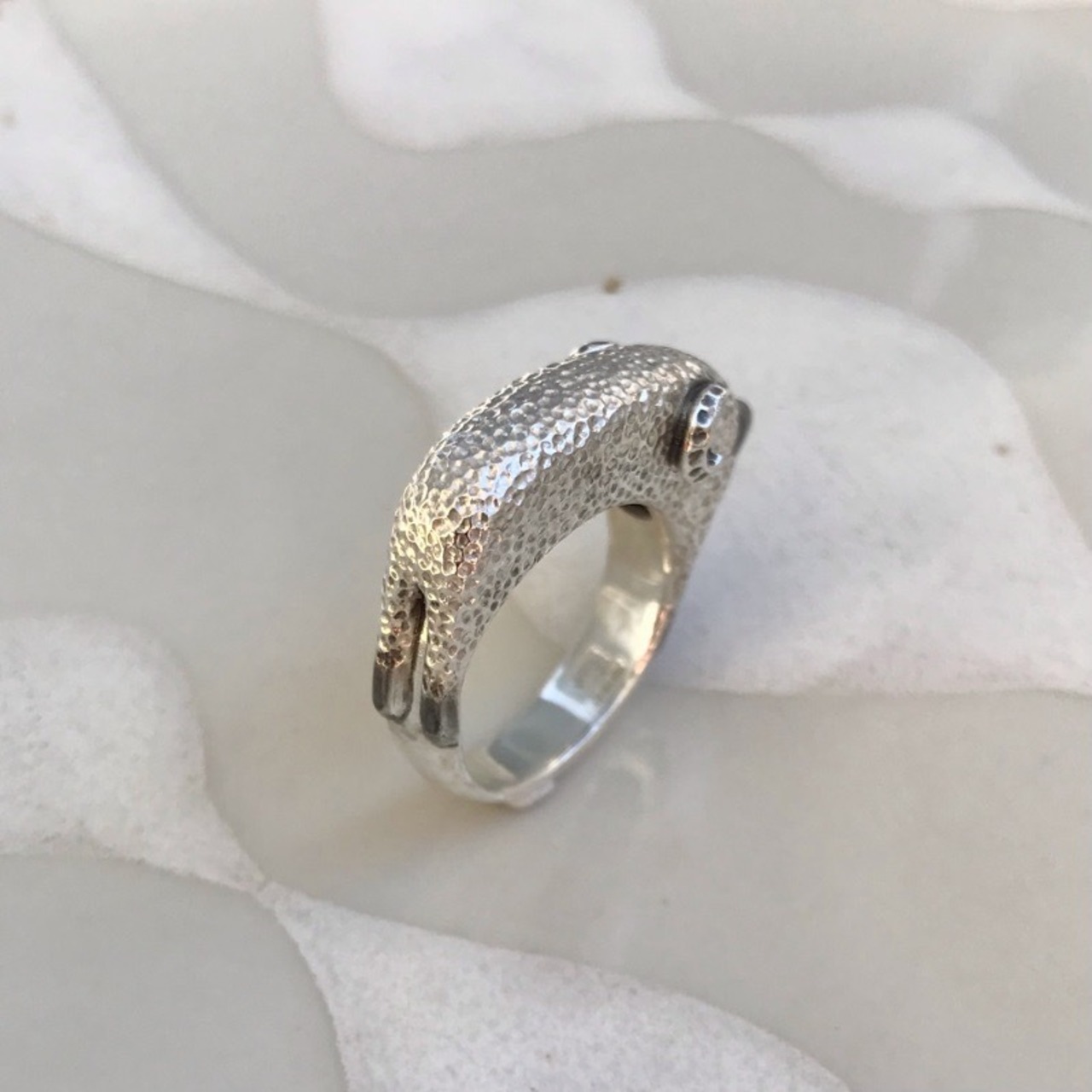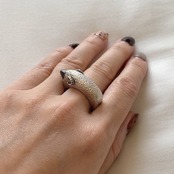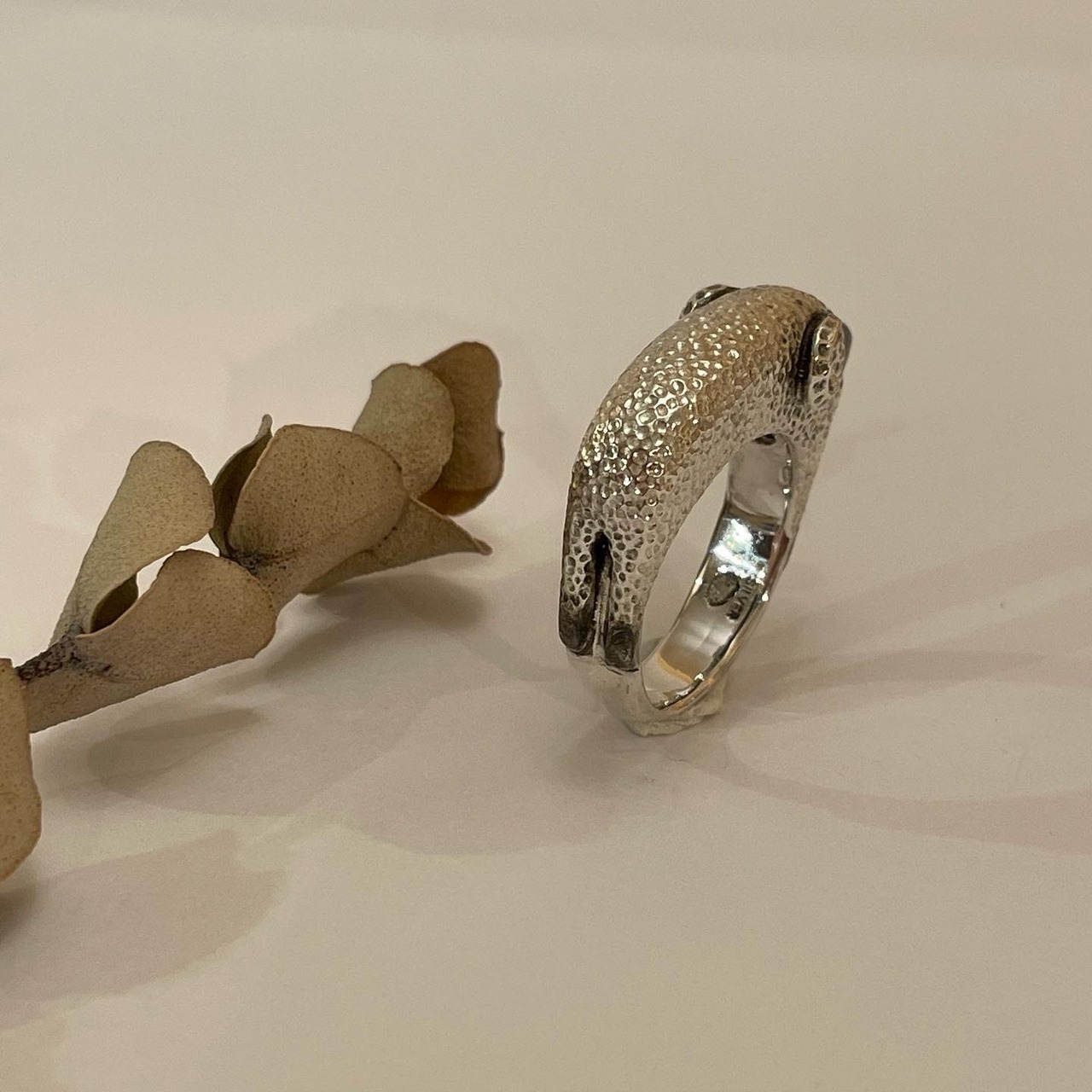 カクッと存在感があるコトロのリング。毛のモフモフを細かな凸凹で表現しています。