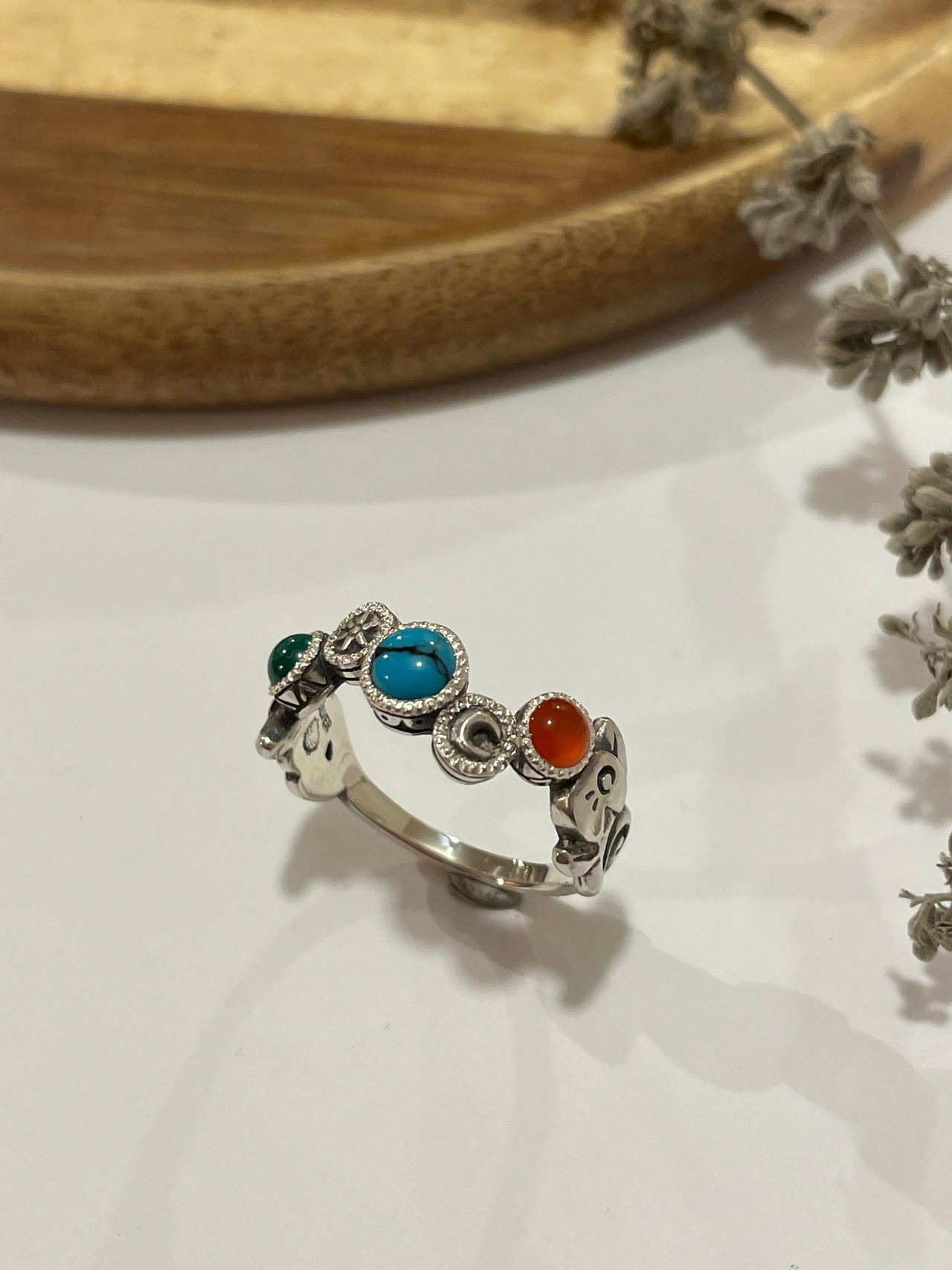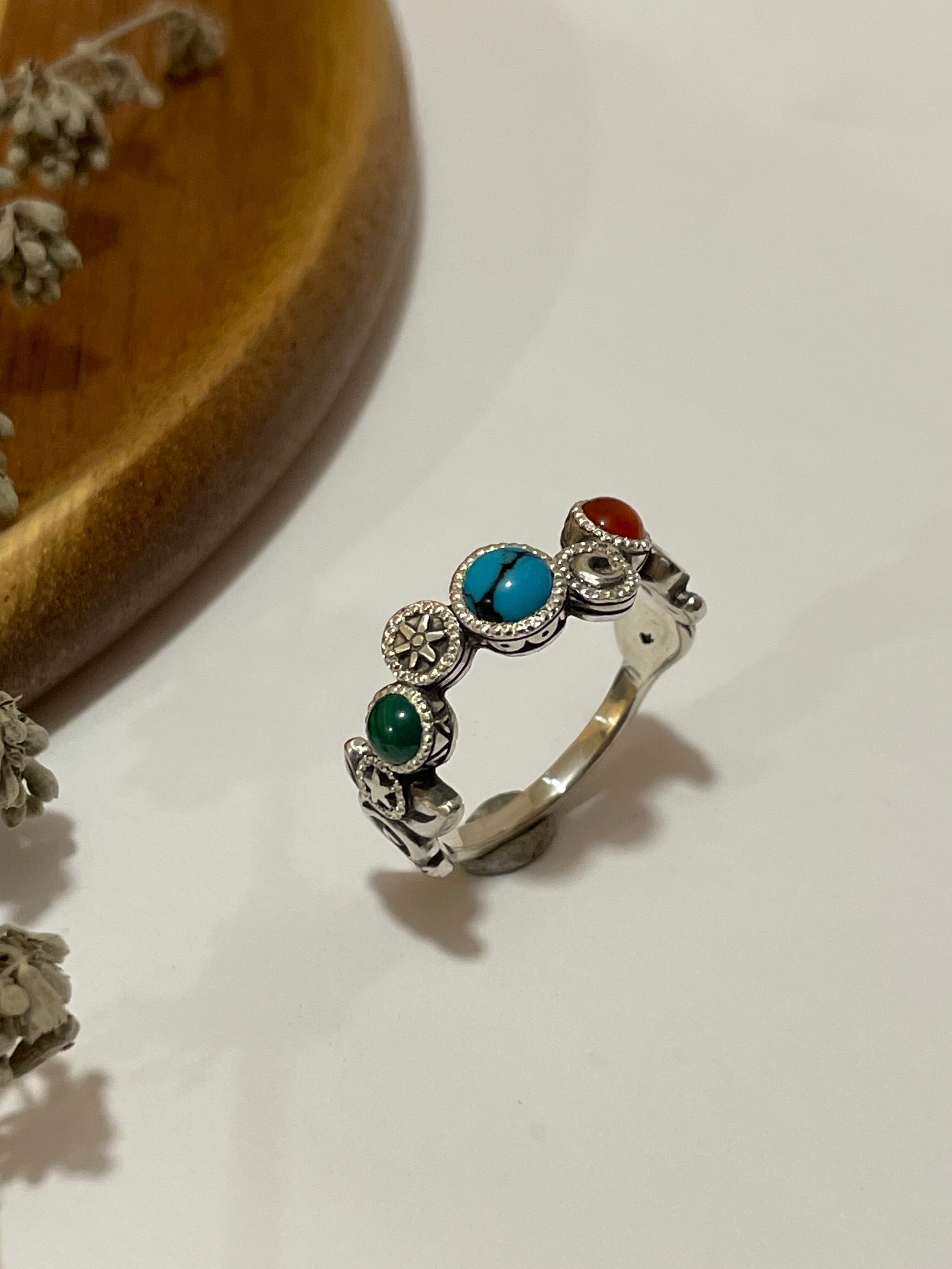 ターコイズ、カーネリアン、マラカイトが
