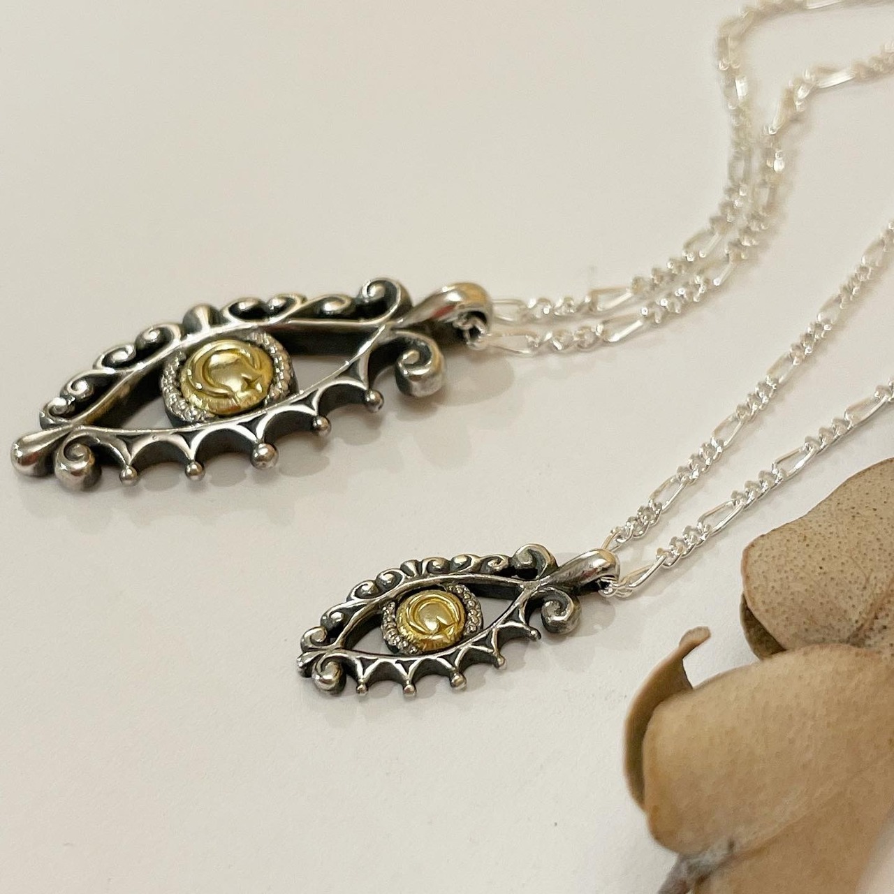 中央には真鍮の目に月が