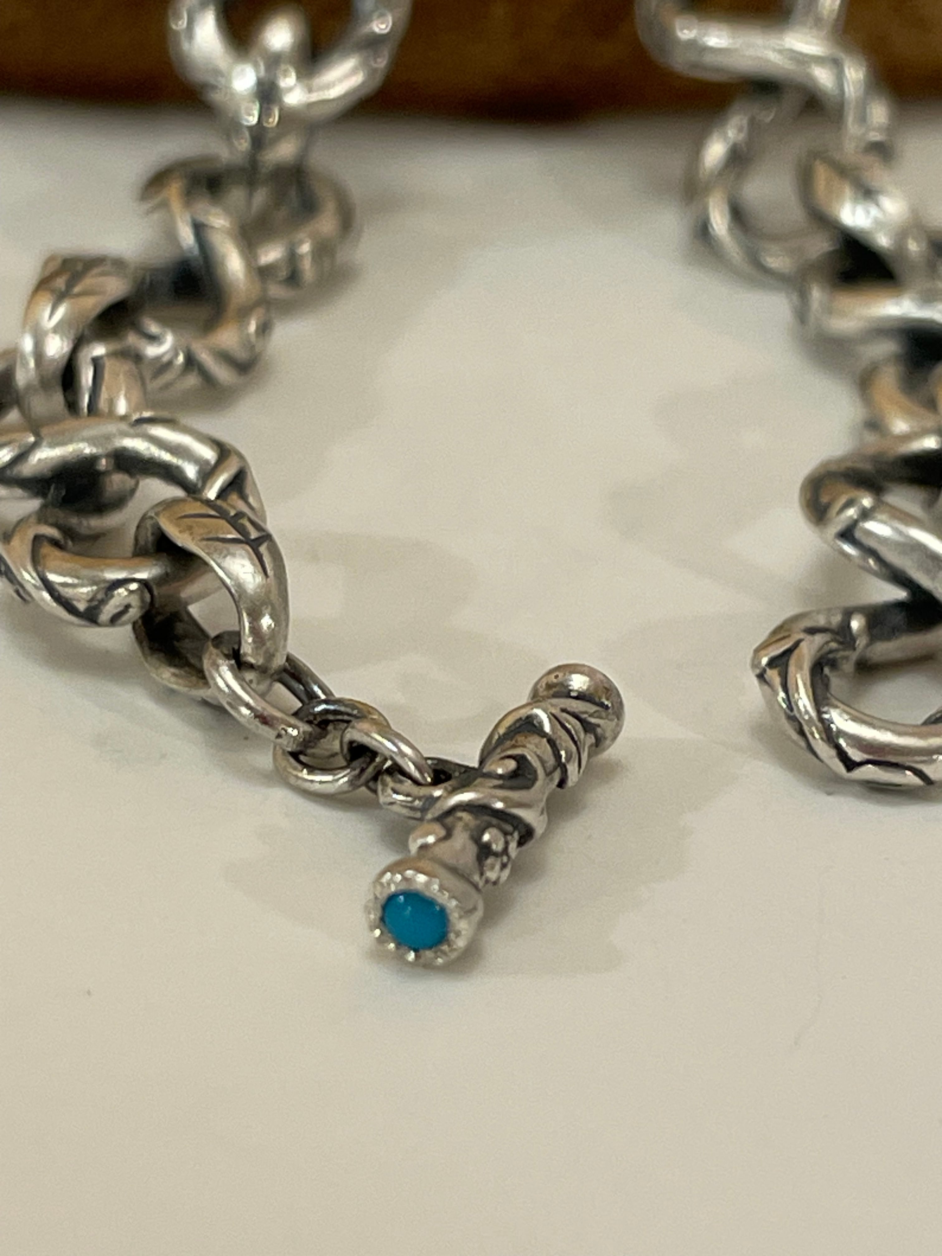 留め具のTバーの両端にターコイズが