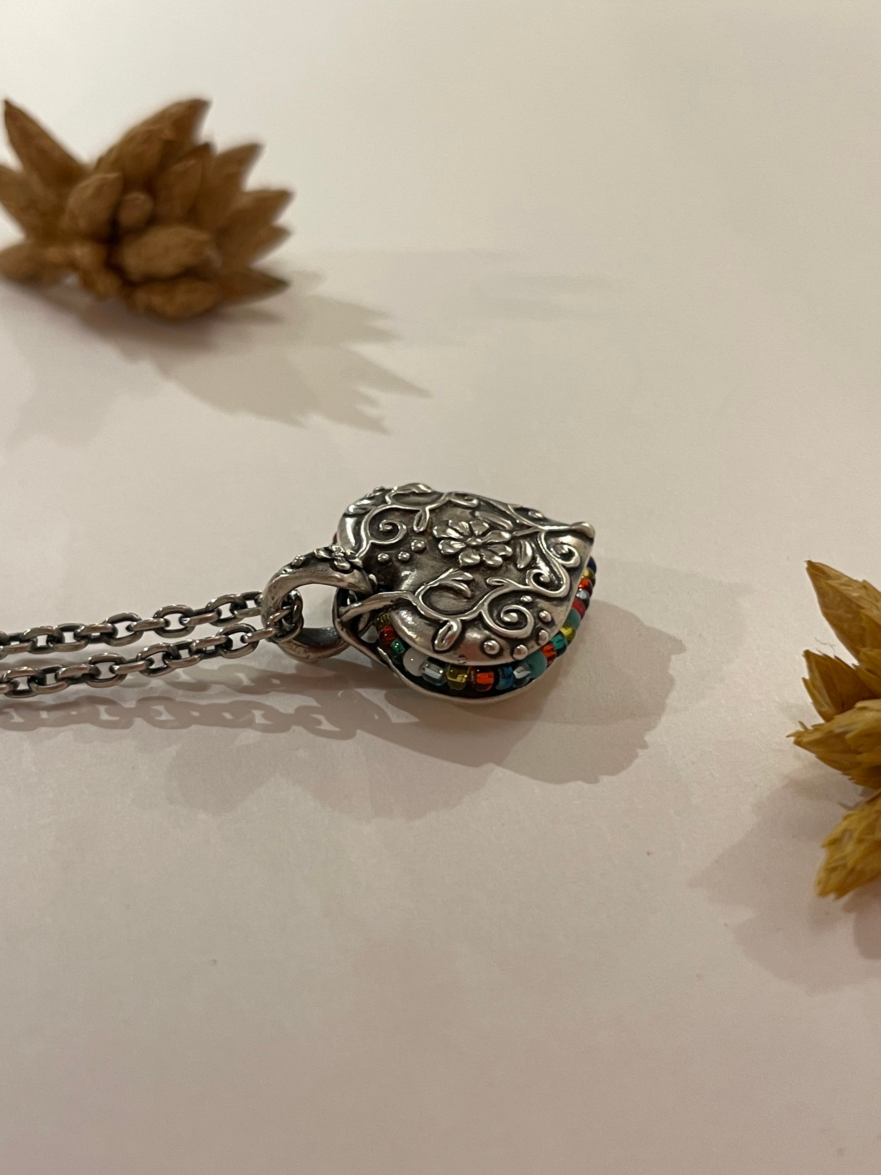 周りにはカラフルなビーズが留まっています。
