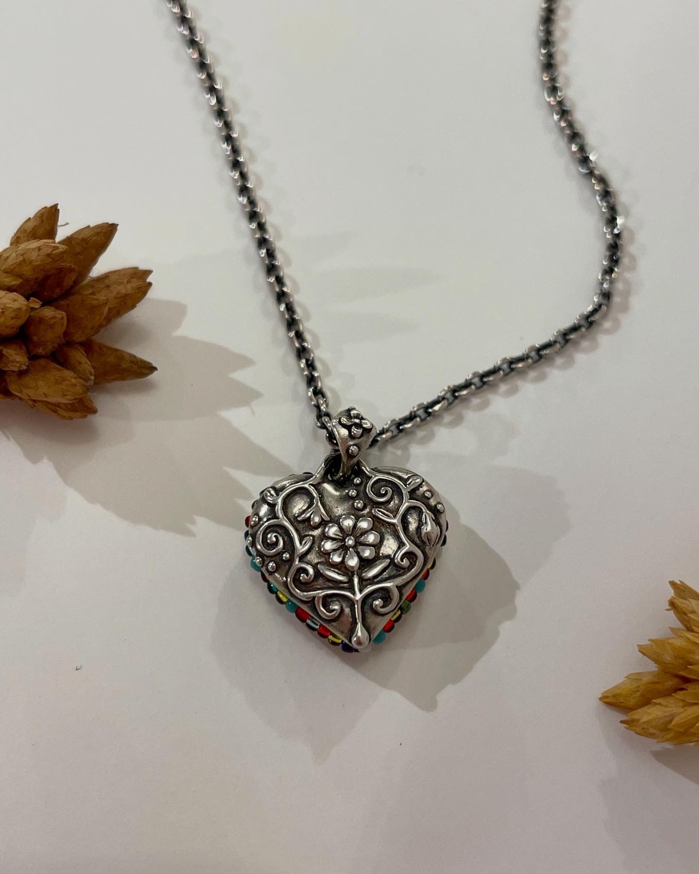花が浮き彫りされたハートの